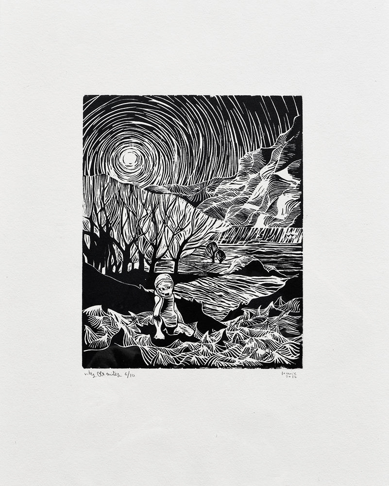 Sèrie de gravats fets sobre planxa de linòleum de 20x30cm aprox. Gravat i brunyit manualment